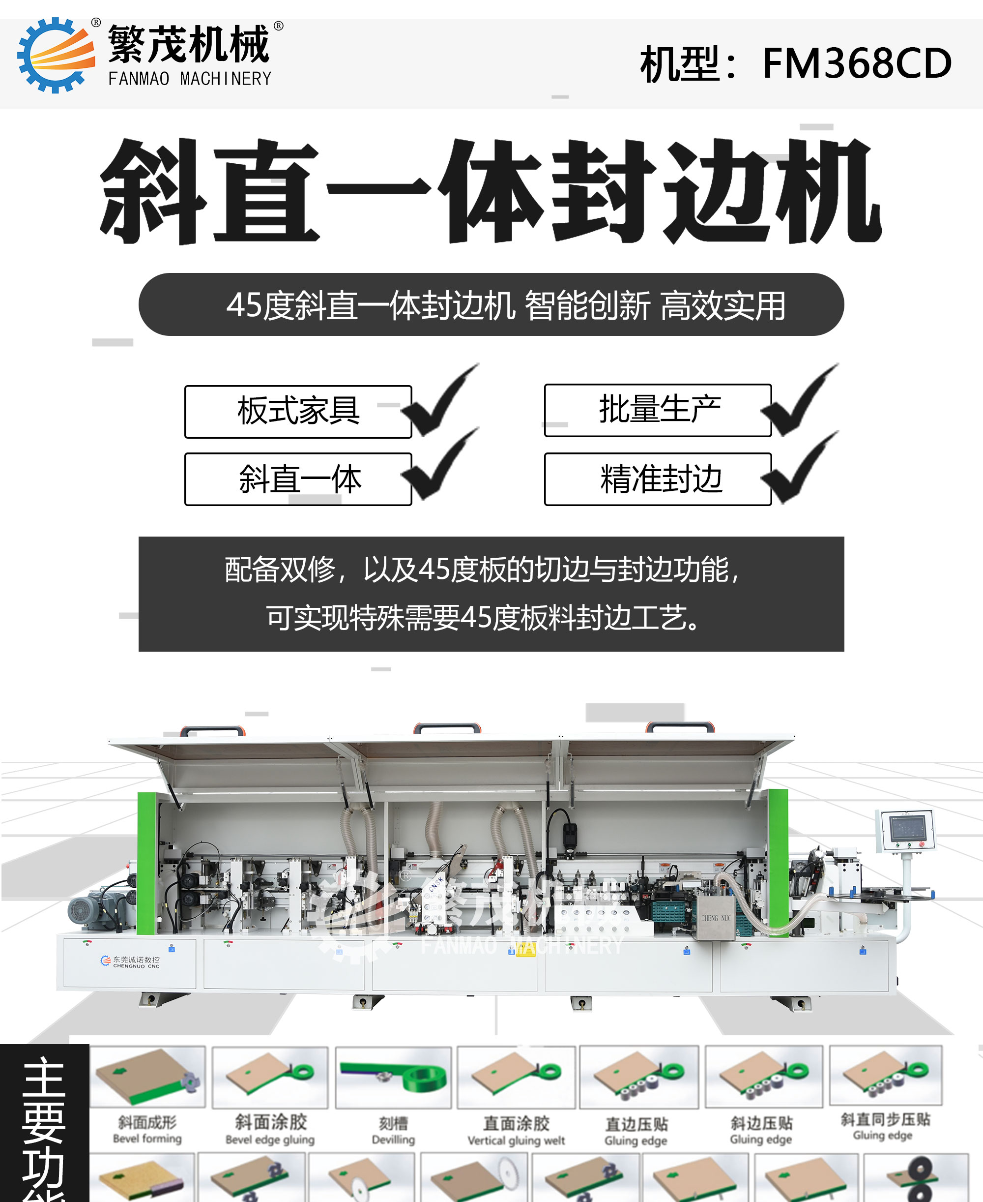 诚诺木工机械 斜直一体封边机 斜边修边 45度斜边封边机 FM368CD