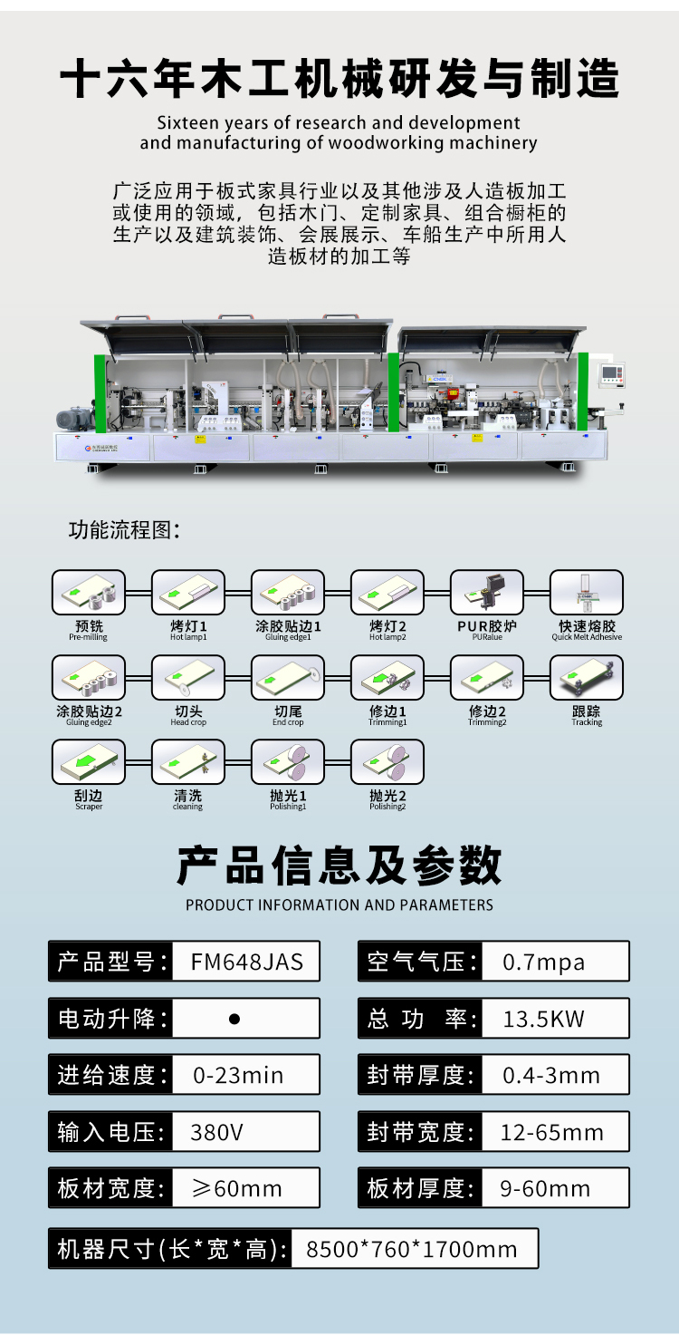 FM648JAS快速溶胶全自动封边机PUR胶炉