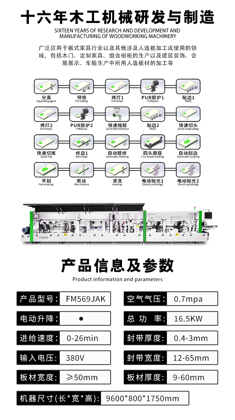 自动调刀FM569JAK高速智能全自动封边机